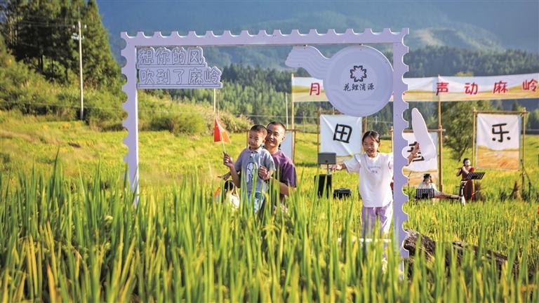 国庆假期,周宁县在麻岭梯田上搭建舞台,举办了“月满稻浪·声动麻岭——稻田音乐会”,乐声环绕稻秆,音符与稻穗共舞,自然与艺术相遇,吸引不少游客在此赏秋景、品秋韵,穿梭稻田合影留念。“与朋友一起,到金色稻田里欣赏秋日美景,这是一个不错的体验。”游客陈先生举起手中相机定格下一个个美好瞬间。