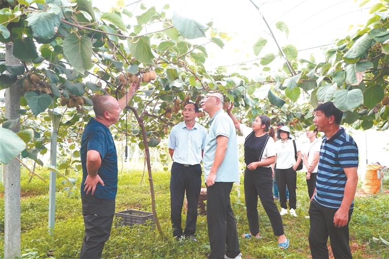 当天,科技特派员先后深入虎贝镇猕猴桃、葡萄种植基地,详细了解果树种植生长情况,提出针对性建议,包括加强基础设施建设、优化种植技术、标准化花果整形、合理调控水肥及强化品牌建设等。