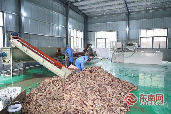三明泰宁县大田乡料坊村的洋芋淀粉加工厂一派忙碌景象。