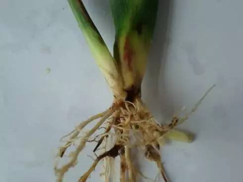 玉米根腐病是腐霉菌引起的病害,主要表现为中胚轴和整个根系逐渐变褐、变软、腐烂,根系生长严重受阻;植株矮小,叶片发黄,幼苗死亡。