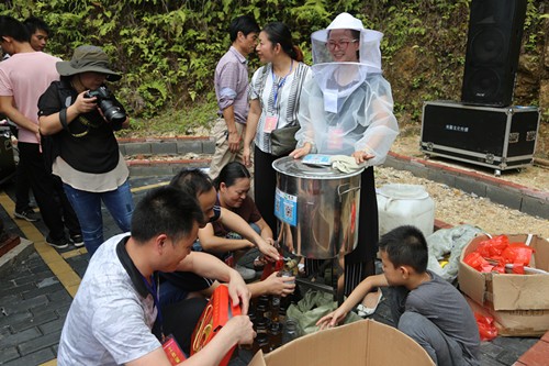 施禄昌是东华山养蜂专业合作社的创始人,有着50多年养蜂经验。当日上午,施禄昌现场为大家讲解了蜜蜂的四季管理以及蜂蜜的营养价值等知识。