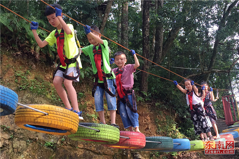 在苏家山村,小朋友挑战丛林穿越项目。 福建日报 李向娟 黄起青 林志勇 郑文敏 摄