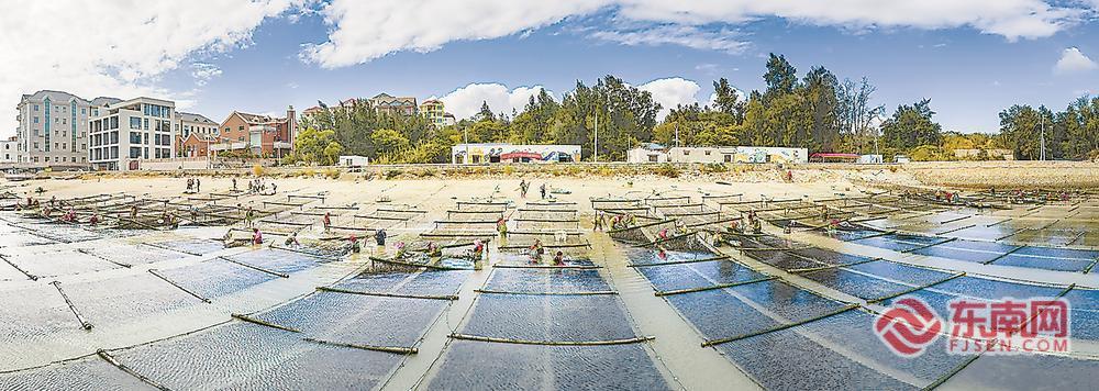 眼下,正值紫菜收割的黄金时节,位于莆田市湄洲山亭镇蒋山村的2000多亩紫菜迎来采收季。连日来,养殖户抢抓晴好天气,收晒今年的头水紫菜。