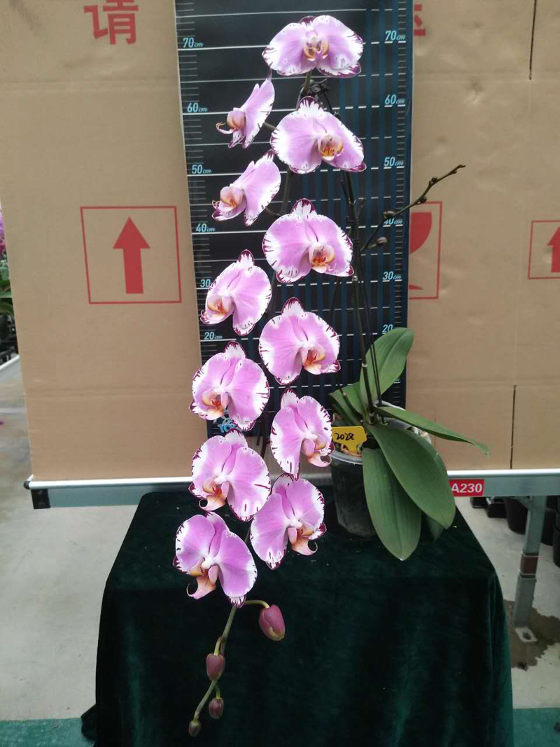 钜宝天使:花径11cm,花梗高度40cm,叶片间距40cm,花色为粉红色带黑色插角,对比色鲜明突出,苗株抗病性强,易栽培管理。