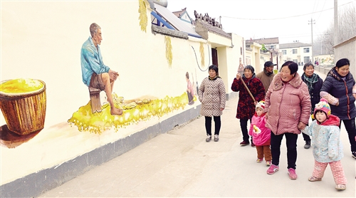 江苏宿迁市宿城区中扬镇唐莫村,3D田园风光墙画、石磨砖墙、实木长廊,勾勒出一幅美丽乡村画面。戚善成摄