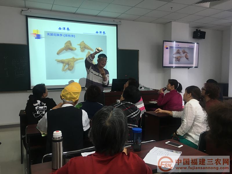 随后,厦门市药学会选派的医药专家洪壬癸现场开展了贵细中药材鉴别专题讲座。医药专家凭借多年的从业经验和专业知识,以幽默的语言、通俗易懂的描述、样品对比和展示等方式,讲解了常见贵细中药材人参、野山参、高丽参、西洋参、冬虫夏草、黄芪、党参、枸杞鉴别技巧,引人入胜,老年大学的学员们听得津津有味,课后纷纷围着医药专家咨询贵细中药材如何发挥养生保健作用的各种问题,医药专家耐心开展了课后答疑。