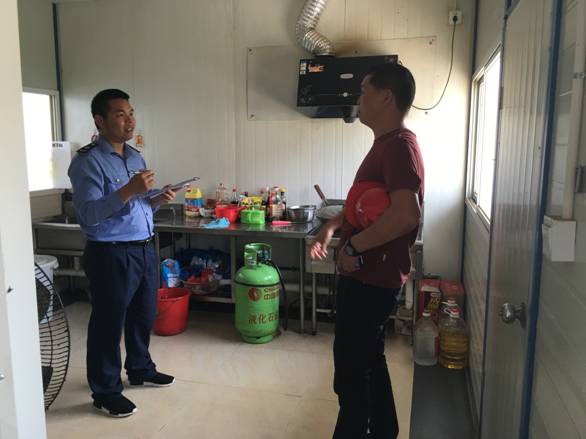 为切实加强建筑工地食堂食品安全监管,有效预防食物中毒事件发生,保障建筑工人的饮食安全,灌口所对照市建设局协助提供的建筑工地食堂基本情况表,结合创建国家食品安全示范城市工作,对辖区内的建筑工地食堂开展风险隐患排查。重点检查食堂的索证索票、从业人员管理、食品采购与贮存、场所环境卫生情况等,检查过程中发现部分人员未办理健康证、待用餐具未存放于保洁柜、窗户未设置纱窗等问题,执法人员均下达餐饮监督意见书,责令其限期整改。