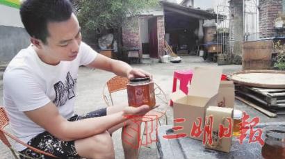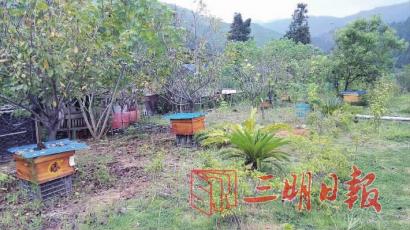 走进将乐县光明乡光明村蜜蜂园,远远望去,一排排蜂箱有序摆放,成群的蜜蜂围着蜂箱来回飞舞,不时传来一片嗡嗡声。养蜂人头带斗笠,小心翼翼地揭开蜂巢,蜜蜂爬满整个扇面。只见他娴熟地用刷子把蜂群轻轻地扫下,再将蜂箱板放进采蜜机里。不一会儿,新鲜的蜂蜜就收集好了。这位养蜂人是36岁的谢君。