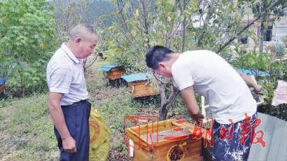 近年来,在产业扶贫过程中,光明乡针对无技术、无劳力的深度贫困户,推行中蜂“代养”模式,让贫困户直接享受收益。但养蜂需要技术,也需要到处追花夺蜜,很多贫困户家庭要么没劳力,要么没技术,怎么养蜂?