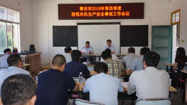 9月29日上午,莆田市农机总站在荔城区农机监理站会议室召开全市2018年第四季度防范农机生产安全事故工作会议。参加会议的有市农机安全生产领导小组全体成员、各县区农机管理、监理站站长,城厢区、涵江区农业局分管农机领导,北岸农林局农机负责人20多人。