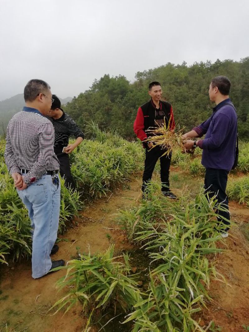 10月29日,在大田县前坪乡金绿生姜专业合作社基地里,福建省农科院蔬菜研究中心主任薛珠政及大田县农科所所长周高山等专家陪同下,正对蒋先裘种植的生姜进行实地查看、询问、采样等并对该情况进行“问诊”。薛主任说:发现姜瘟病赶快把姜挖走,以免传播其它的生姜,挖走姜后用硫酸铜50倍,灌姜窝消毒,一个窝灌20毫升,没有硫酸铜用石灰也行,消毒后用地膜盖住姜窝不让它扩散。专家们为该县蔬菜生产提供科学的指导性意见。