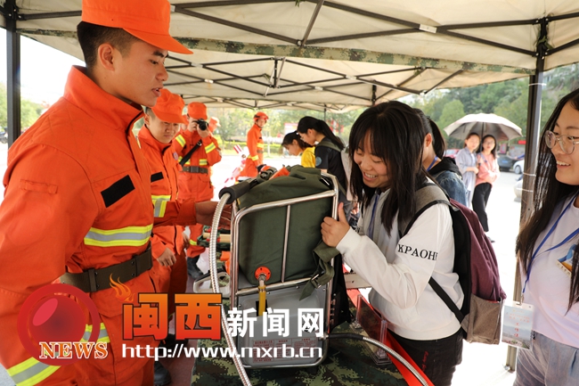 活动中,森林消防指战员向学院师生详细讲解了森林防火重要性、森林防火基本常识,让学生自觉做到不玩火、不玩易燃易爆物品、不将火源带入森林。期间,指战员还手把手指导师生们如何正确操作灭火器,并演示了森林灭火装备的操作规程,与师生采取互动式方法体验森林灭火装备,进一步提高了广大师生的森林防火意识,让“全民参与,防治火灾”的森林防火宣传活动深入师生内心,从而带动全社会参与、支持森林防火,为建设“美丽龙岩、生态龙岩” 起到了积极助推作用。