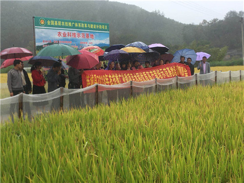 连城县庙前通良农产品种植专业合作社300亩水稻种植地是我县基层农技推广体系改革与建设项目的试验示范基地之一,主要负责组织实施我县水稻主导品种和主推技术示范与展示。11月16日,结合晚稻已成熟、准备机收开展最后一次培训观摩会,邀请到基地指导专家--市农技站站长江天茂教授级高级农艺师到现场开展该基地的第4次现场教学,讲授粮食安全生产的重要性、规模化机械化生产的有效性。这种现场观摩培训的教学方式,可以直观形象地感受农业“五新”技术的成果,受到农民的欢迎。