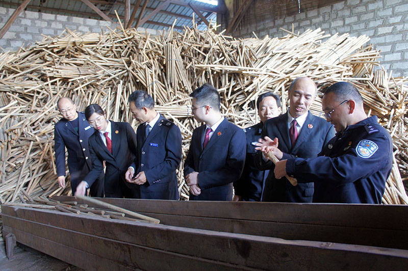 11月23日,省林业有害生物防治检疫局、南平市森防检疫站和松溪县法院、检察院、森林公安、森防检疫站等多部门联合行动,现场对携带松材线虫活体的松木芯进行切片除害处理,总计13.7吨。