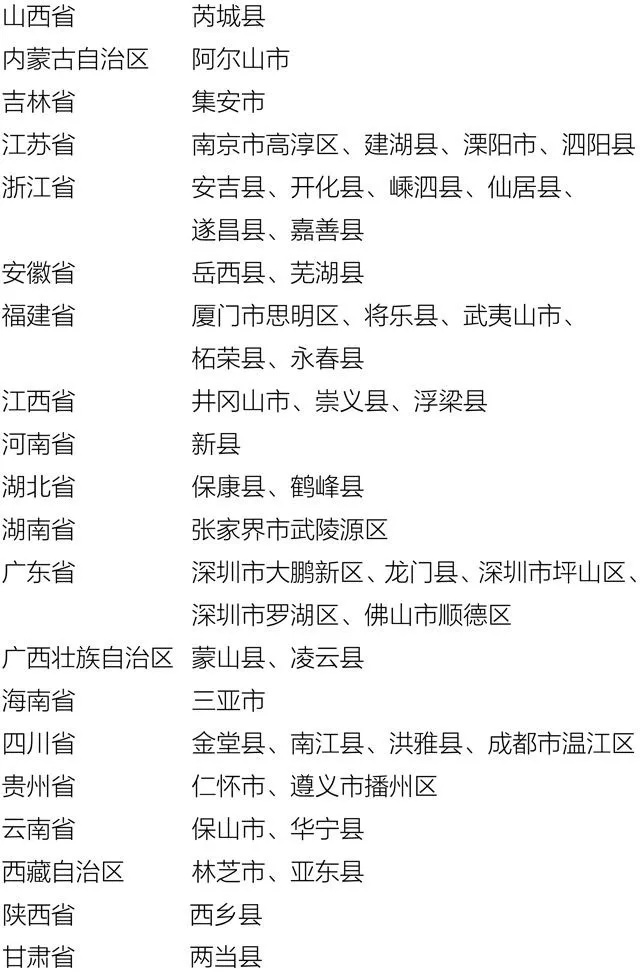 第二批国家生态文明建设示范市县初选名单共有47个。为公开、公平地开展国家生态文明建设示范市县评选工作,生态环境部鼓励公众积极参与并监督生态文明建设示范市县创建工作,并对第二批国家生态文明建设示范市县初选名单进行公示。公示时间为11月20日至11月26日。