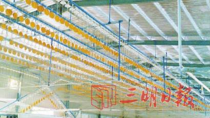 “三星竹木”的自动化生产线正在晾晒上漆的果盘。
