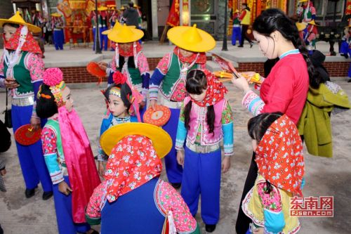 “惠女游花灯”祈福活动前,小惠女们整理衣装。东南网 薛逸群 摄