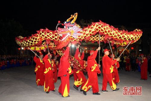 “惠女游花灯”祈福活动中舞龙表演。东南网 薛逸群 摄