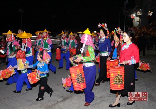 “惠女游花灯”祈福活动吸引了众多村民围观。东南网 薛逸群 摄