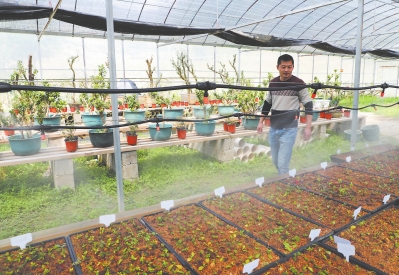 曾在广西做生意的王永光,对发展花卉产业有着不一样的理念——除了规模种植、发展电子商务,还与省农科院合作,进行自主育苗,培育杜鹃新品种。创办七年来,他的基地不仅打造了几十亩独具特色的精品花海,拥有2000盆杜鹃花、罗汉松等盆栽,年均创收150多万元,还为贫困户及周边村民提供30多个就业岗位,年人均增收1万多元。