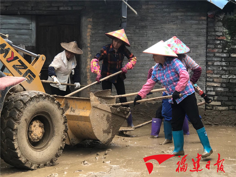 9日至10日,邵武市晒口街道高峰村60多名村民支援晒口社区,帮助清理淤泥。(福建日报 刘建飞 叶莹)