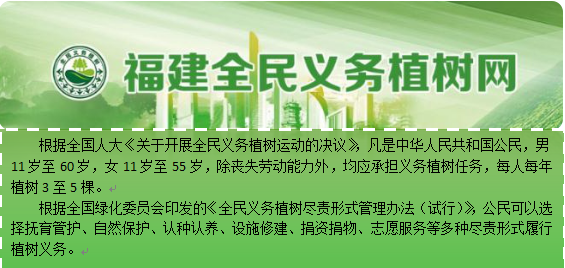 在第42个植树节来临之际,福建省绿化委员会办公室携手长汀县林业局推出互联网+全民义务植树——“我为长汀水土流失精深治理种棵树”项目,让您足不出户,动动手指,就能履行植树义务。快来“码”上尽责吧,为八闽大地再添新绿!