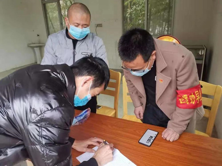 面对疫情,张淼海总是走在最前头,劝导、设卡、摸排、消毒等防控一线处处可见他和防疫巡逻劝导队的身影。科后村村民居住较为分散,疫情防控任务较重,为确保摸排管控全覆盖,他每天都要带着村“两委”干部挨家挨户摸排监测、宣传防控知识、建立排查档案、指导做好消杀防护工作。张淼海带队的走访和电话问询,有的村民表示理解,积极配合如实汇报;有的村民不理解不配合,觉得小题大做;有的甚至不耐烦地闭门谢客。张淼海不急不恼,不厌其烦地耐心沟通劝导,大伙都知道村里来了好脾气的第一书记。“张书记虽然是省直部门来的干部,但他现在是我们的自己人,大难当前,我们更要听他指挥!”看到村民群众的防疫意识缺失,村主任雷奶祥急的直跺脚,“我们要相信张书记,他是为科后村好,为我们大家好!”张淼海数十天的执着坚守和无私付出,将防疫工作做到了村民的心坎上,村民们对防疫工作从不理解到完全支持配合,更有村民主动请缨加入防疫劝导队。