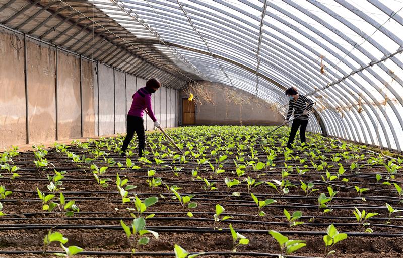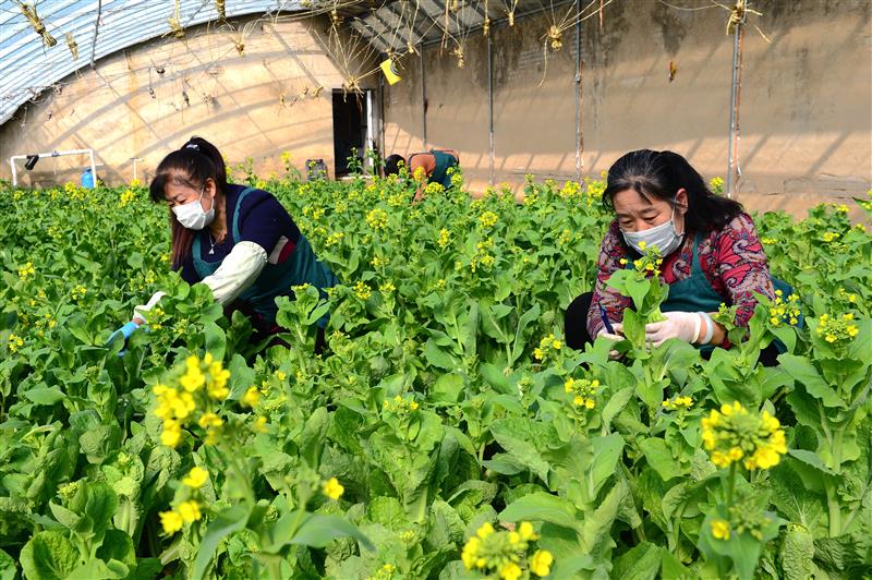 3月20日,在合作社的温室大棚内,社员正在采摘应季蔬菜供应北京市场。