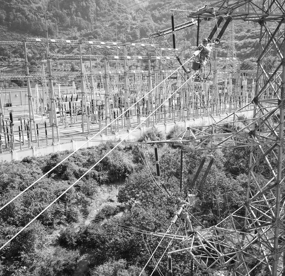 日前,在永泰县梧桐镇埔埕村,国网福州供电公司检修人员正在220千伏青高线1号塔对设备进行检修,消除隐患,确保冬季用电高峰期间的安全可靠供电。