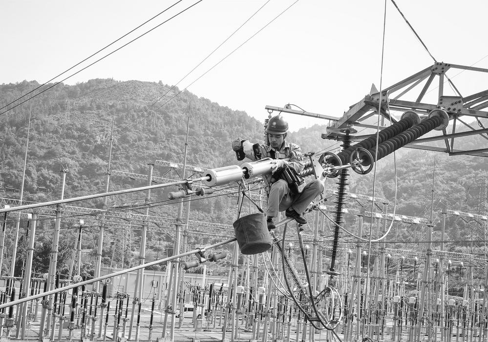 福州供电公司检修人员在永泰县梧桐镇埔埕村220千伏青高线1号检修绝缘子。