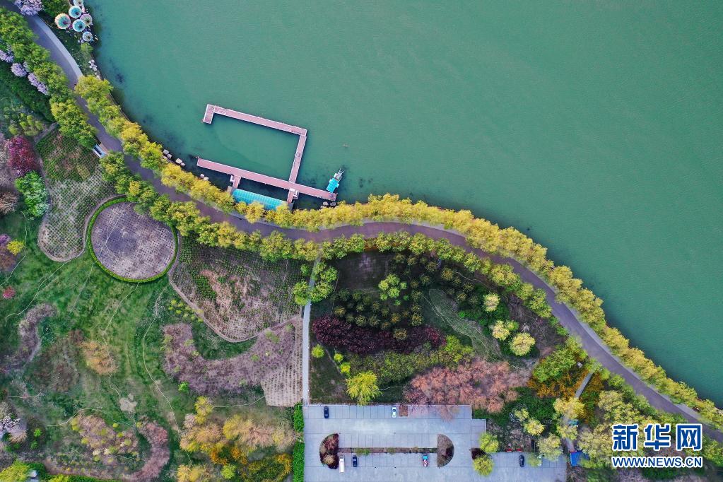 4月13日拍摄的河北省唐山市丰南区惠丰湖景色(无人机照片)。