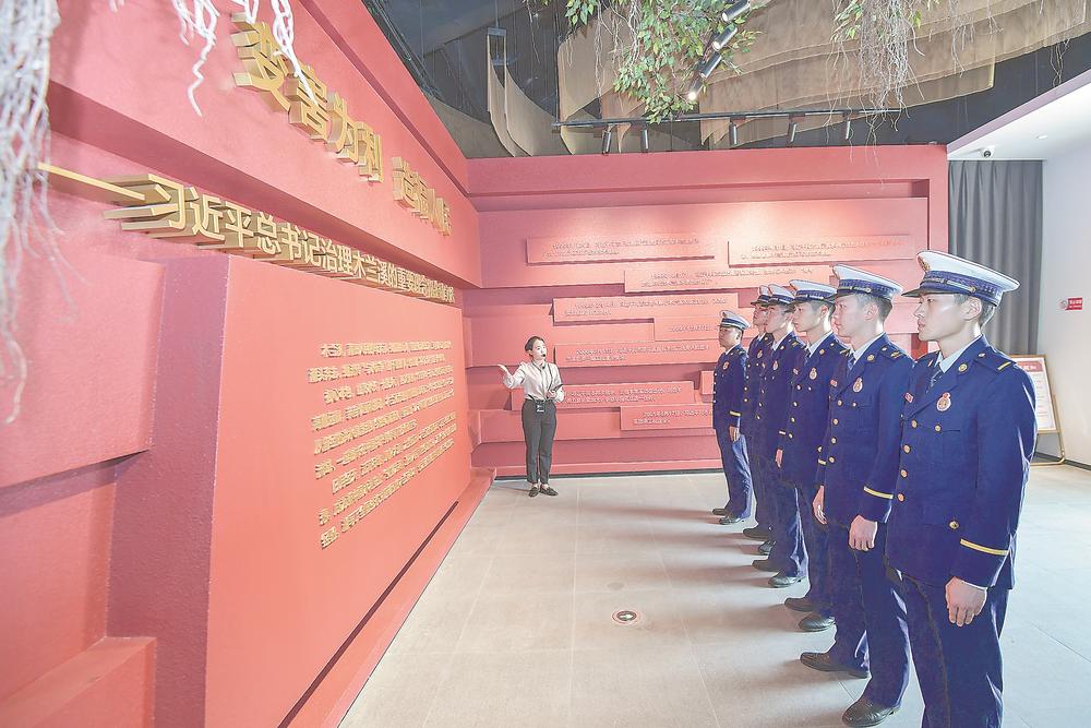 莆田市城厢区消防救援大队队员到木兰溪治理展示馆参观学习。