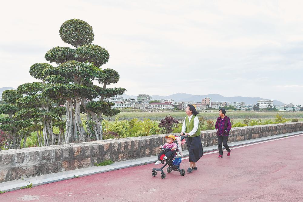 市民从木兰溪边绿道走过。木兰溪综合治理的生态效益变成广大市民的福利。