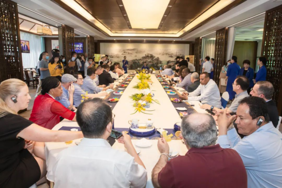 7月16日至31日,福建将迎来第44届世界遗产大会。大会前(7月13日),驻华使节代表团在世界遗产大会的福建行首日,到访我会副会长单位厦门华祥苑儒士馆,感受非物质文化遗产乌龙茶制作技艺带来的独特魅力与文化传承并体验“大国盛世茶叙”。这也是华祥苑厦门儒士馆继2017年金砖厦门会晤之后,再一次见证和助力盛世茶叙。