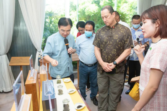 为了让驻华使节代表团亲身体验盛世茶叙,现场还展示了闽南十八道功夫茶艺表演,奉上一杯国缤茶,让贵宾在茶香四溢、平和雅正的环境中轻松品茗与交流。