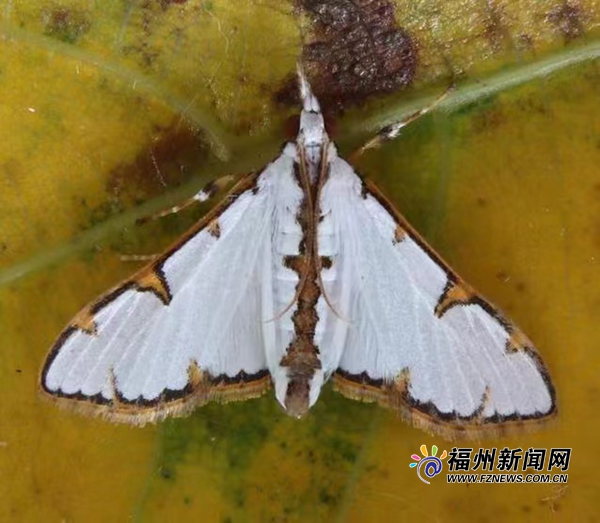 福建省林业科学研究院的宋海天老师说,两种昆虫是“近亲”,主要看翅膀上的斑纹。“圆斑黄缘禾螟”的翅膀上有圆形的图案。按照以往经验判断,在金鸡山公园出没的是单棘黄缘禾螟。