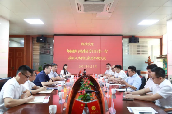 近日,中国邮政储蓄银行福建省分行行长李鹏一行,赴我会副会长单位福建天马科技集团股份公司考察调研交流,详细了解集团的发展历程、特种水产、畜牧、食品三大主营板块经营、一二三产业规划布局和集团未来五年战略发展规划等相关情况。天马科技集团董事长陈庆堂先生、执行总裁陈加成、副总经理许梦华、总裁助理阙川博、产业办主任黄加龙等集团领导热情接待。