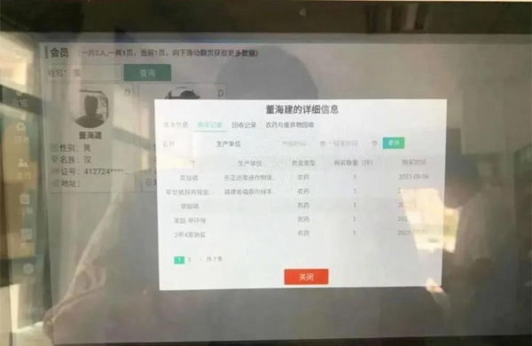 登记完成后,通过摄像头识别,董海建的基本信息就从电脑里“跳”了出来。与此同时,他购买的化肥、农药明细也“飞”进了市农业农村局的“数据大脑”。