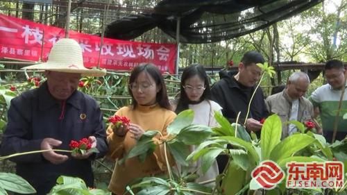 东南网讯 11月12日,光泽县在寨里镇桃州村召开光泽先行县七叶一枝花、黄精采收现场会。省农科院专家、县中药材协会、寨里镇、县林业局、发改科技局、承天农林发展有限公司等相关负责人和来自邵武市、江西井冈山市等地的客商参加了现场会。