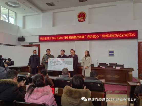 14日,顺昌县慈善总会举办福建省顺昌县升升木业有限公司“升升爱心,慈善济困”活动启动仪式。福建省浙江商会纪委书记、顺昌县升升木业有限公司董事长毛克升向县慈善总会捐赠人民币66万元,用于帮助因灾、因病导致家庭特别困难的低保户。