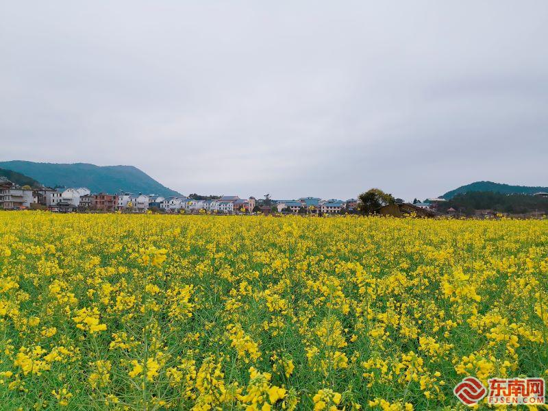 经过一段盘山公路拐进村口,入眼便是一片金黄色的油菜花田,颇有陶渊明《桃花源记》所写的“复行数十步,豁然开朗。土地平旷,屋舍俨然.....”之感。坪盘村油菜花号称福建“小婺源”,该村每年发动群众播种500多亩油菜花,作为春季旅游的特色景点,每当油菜花盛开季节,游人如织,周边农家乐、相关土特产市场生意火爆。了解到,2021年春季观看油菜花、樱花的游客数量达15万多人次,增加村财收入30万元,村民农家乐及土特产收入45万元。