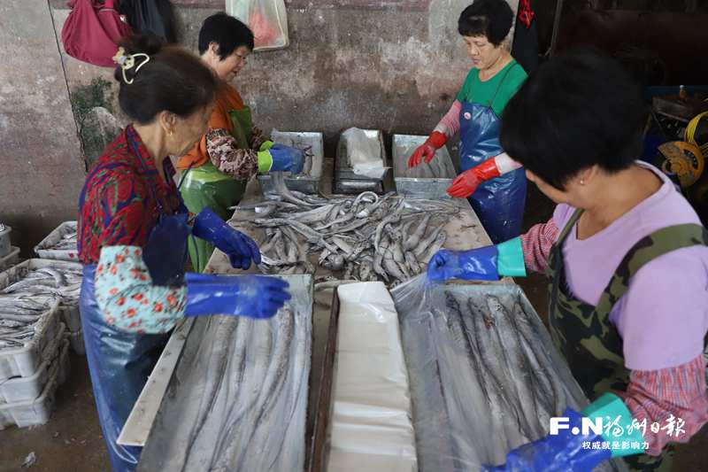 工人分拣新鲜上岸的带鱼。(连江融媒体中心供图)