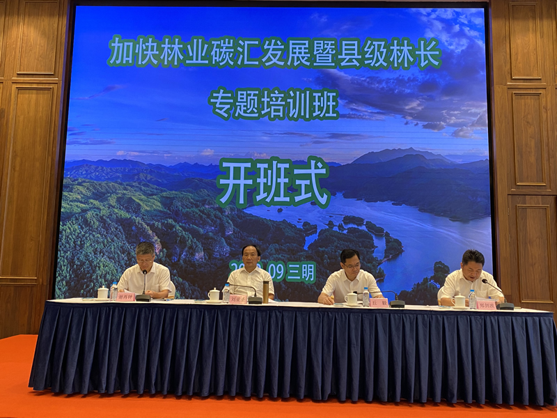 9月19日-23日,由省委组织部主办,省林业局、海峡人才市场具体承办的加快林业碳汇发展暨县级林长专题培训班在三明市三元区举办,来自全省各市、县(区)县级林长和林长办主要负责人共120人参加培训。培训班邀请了福建农林大学、福建省委党校等单位的专家、学者和领导进行授课。省林业局党组成员、副局长刘亚圣,一级巡视员谢再钟,三明市委副书记、政法委书记、副林长丘毅,市政府党组成员、副林长郑剑波等领导出席了开班式。