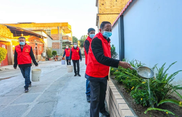 “村落里的花花草草需要有人去养护,‘微景观’才能真正成为村落的风景线。”苏振志介绍,“养护的事,就让我们老年人来负责吧。”为此,该村老年协会建立了志愿服务机制,15名老人分成3组,每组轮值一周,负责给村落各个角落的花草、绿化浇水等养护工作。除此之外,这支老年志愿服务队还当起宣传员、监督员,宣传倡导“门前三包”,参与日常卫生监督等工作,积极为改善村落的环境卫生贡献力量。