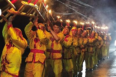 2月4日,武夷山兴田镇枫坡村村民挥舞烛桥穿街走巷。 (新华社发 陈颖 摄)