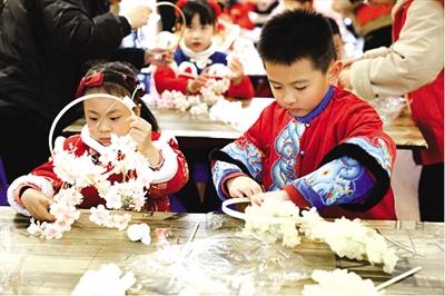 2月3日,由顺昌县新时代文明实践中心、县委宣传部、县文旅局、县文化馆共同举办“玉兔迎福”——顺昌非遗手工灯笼制作活动。图为小朋友在组装灯笼。 (徐华山 潘琳 邱诗雨 摄)