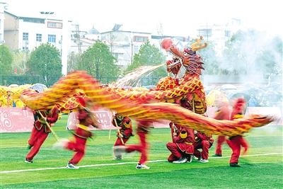 2月4日,浦城县举行“福兔呈祥·福满乾坤·龙舞浦城”元宵舞龙展演活动,10个乡镇(街道)的舞龙队伍分别从该县五个具有当地特色的文化地标同时出发, 沿街巡游至永晖体育中心展演,烘托出喜庆热烈的节日氛围。 (张依婷 柯聪 郑蔚武 摄)